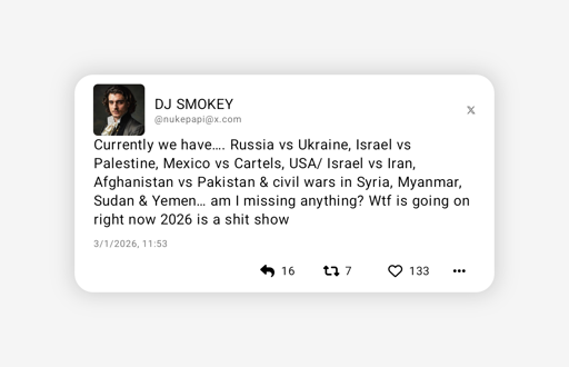 A🔻atar of 🔻engeance@lemmy.mlEnglish · 4 hours agoMusic Industry Updates: DJ Smokey reportedly forgot about Africa (besides Sudan) lemmy.mlimagemessage-square0linkfedilinkarrow-up10arrow-down10