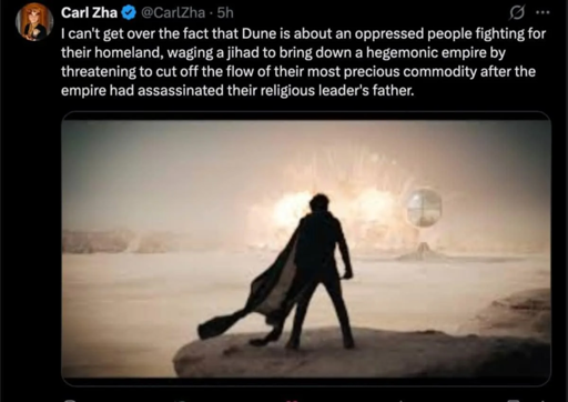 I mean, herbert intended spice to be a metaphor for oil and the fremen are arab/muslim-coded for a reason. It’s just that thisbsame conflict has been going on a long time.