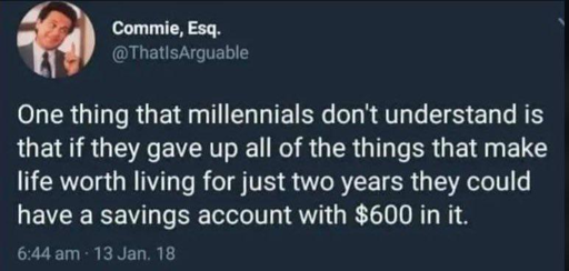 Exactly. There’s a shit ton of materialistic impulse spending that didn’t used to exist and doesn’t need to exist. I’m guilty of it too.