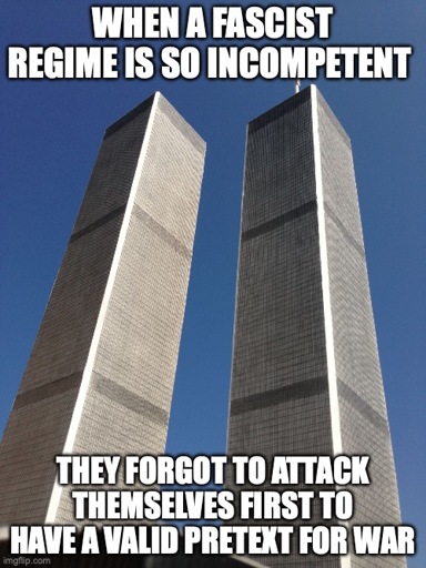 They don’t need convincing.Since we’re talking about the twin towers and provocations to start wars, I want to post this meme (even though it’s got Charlie Kirk in it)