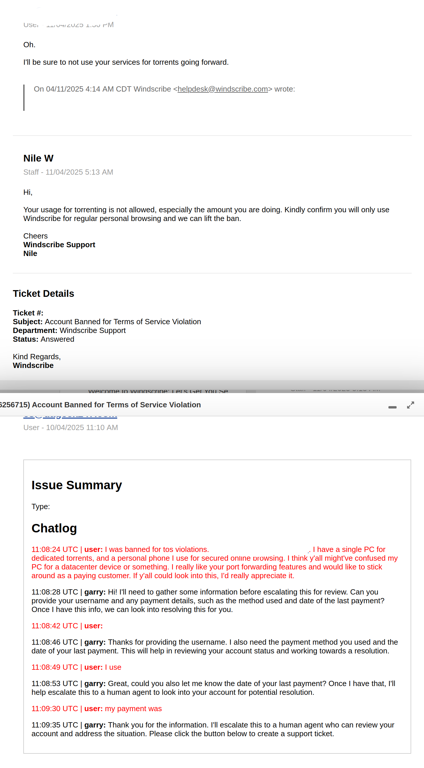 I did shoot them an email (after talking’ with their AI bot first), and they were actually helpful enough. The offered to restore support, so long as I promised to not torrent with them again (which, I honestly did promise not to. I’m not sticking with a VPN service that can’t handle me actually using it for what it’s advertised for) and they did unban the account. Whole email chain took about three days to get resolved.
