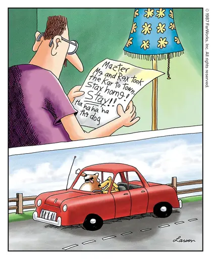 Master Me and Rex took the kar to town. Stay home! Stay!! Ha ha ha ha the dog