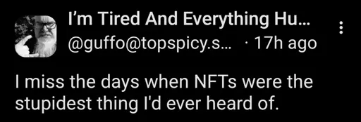 But also implemented incredibly stupidly. You are purchasing a url in a blockchain that points to a server a singular person or org owns in most cases. That gets rid of any point of the blockchain. With enough money I just buy that server, the image url you purchased is now under my control and now it’s porn or something unless you pay me to restore it. There were very few NFTs where the actual thing you’re buying is on a distributed blockchain rather than a pointer to a centralized and privately owned server. In programming terms it’s what rust does to prevent bad pointers with https://doc.rust-lang.org/book/ch04-02-references-and-borrowing.html