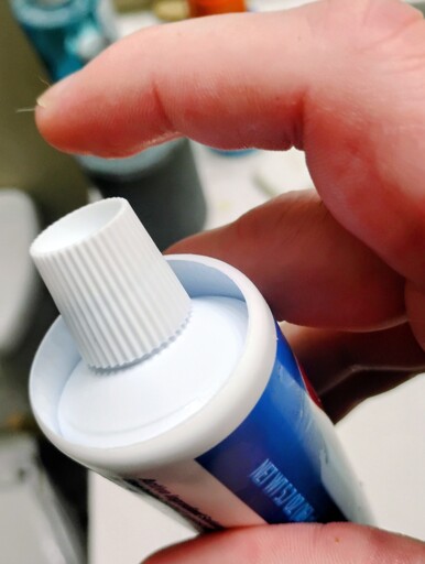 Call or email Crest, there is a lot number on the end of that tube. Let them know, and make them send you a new one or a coupon for a free tube. That’s no acceptable quality, and don’t use it, it was compromised. I never use those brands, they are overpriced. I prefer Aim. Affordable and does the exact same thing, cleans teeth.