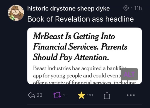 sveltecider@lemmy.ca to Lemmy Shitpost@lemmy.world · 9 days agoend times are herelemmy.caimagemessage-square26linkfedilinkarrow-up11arrow-down10