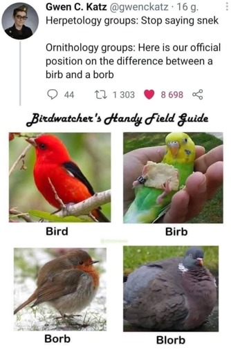 I think borb is just a species with fluffy feathers. Blorb is fat, though.