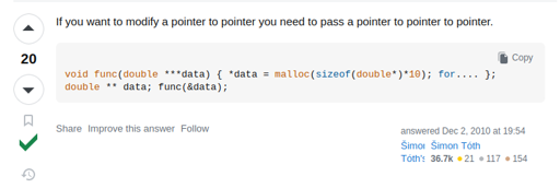 If you want to modify a pointer to pointer you need to pass a pointer to pointer to pointer. I am lost.